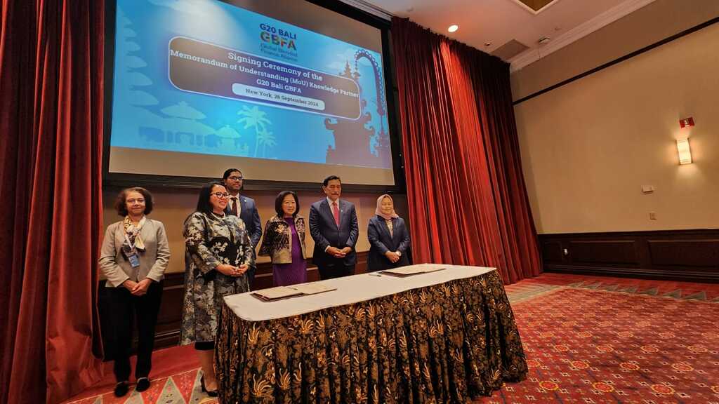 Around the 79th Session of the UNGA in New York, the Government of Indonesia held a G20 Bali GBFA High-level Dialogue including Member Countries ‘Articles of Agreement’ (A0A) Consensus and Knowledge Partners Signing Ceremony. Following intense discussions, the Governments of Democratic Republic of Congo, Fiji, Republic of Indonesia, Kenya, Luxembourg, Sri Lanka, and United Arab Emirates have reached the consensus of AoA to establish the G20 Bali GBFA as a global institution. These countries are committed to completing their respective internal processes and agreed to sign the AoA to become a founding member of the GBFA around the COP29 Azerbaijan. The other LoI signatories, the Governments of Canada and France have followed the discussion. Additional countries, such as Papua New Guinea, Germany, Australia, and Singapore, have expressed an interest to participate in the new international organization. Additionally, two other organisations, Tony Blair Insittute (TBI) and UNDP signed up to become Knowledge Partners.