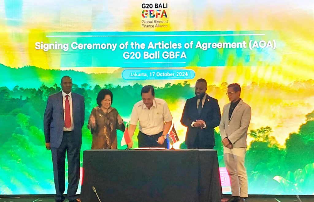 In Jakarta, Kenya signed up for the G20 Bali GBFA, making it the first country to join the Indonesia-led G20 Bali Alliance dedicated to bridging the financing gap for sustainable development goals (SDGs) and climate action. The hybrid Signing Ceremony event was attended by the government representatives of all the potential member countries and knowledge partners, followed by the lighting of 17 SDGs candles as symbolic commitment toward achieving the SDGs.