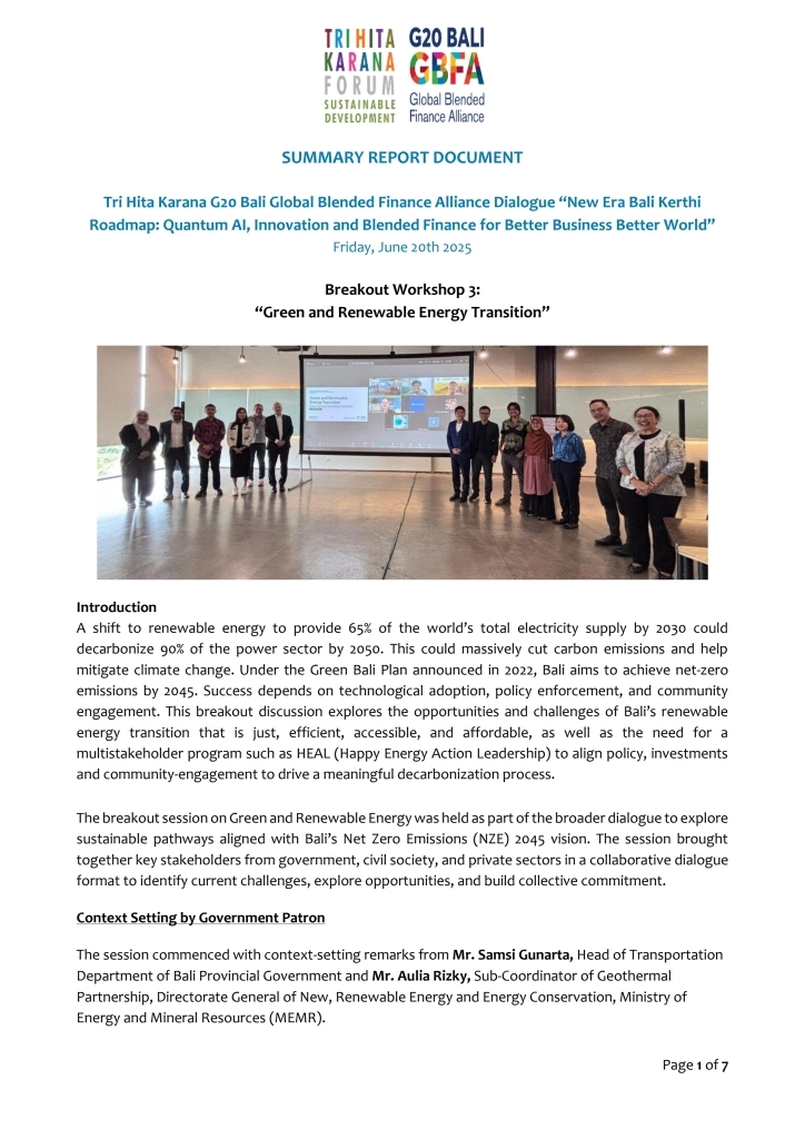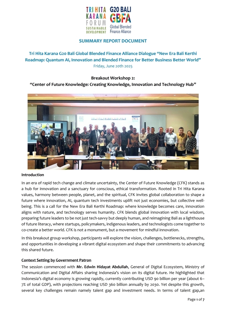 "New Era Bali Kerthi Roadmap: Quantum AI, Innovation and Blended Finance"
